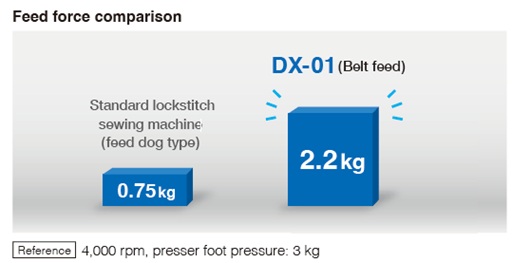 Stable feed force and consistent stitching even at high speeds