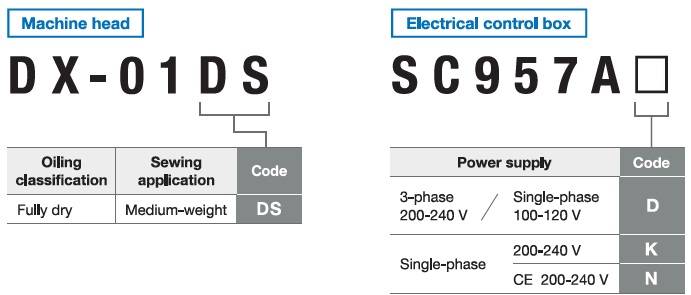 | Hand switch | Standard with 3-button system (Factory settings: reverse feed stitching, one-touch changeover, one-stitch correction) |