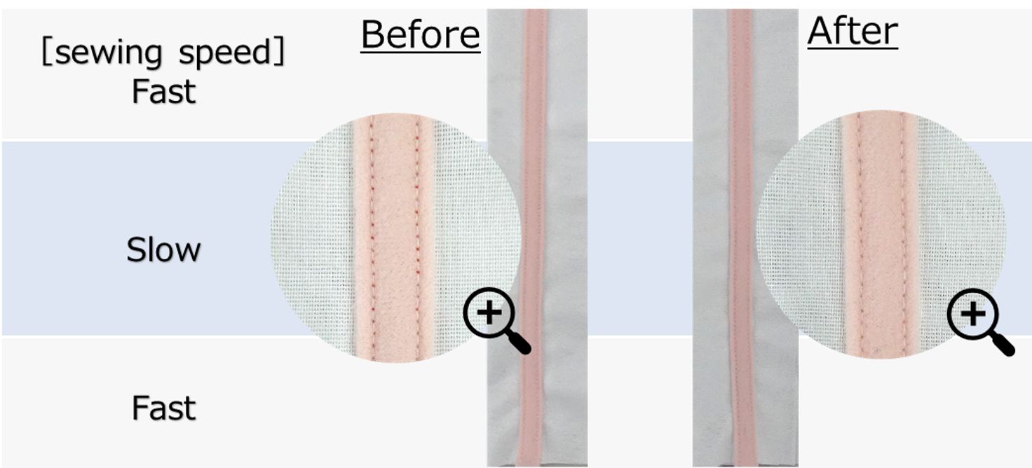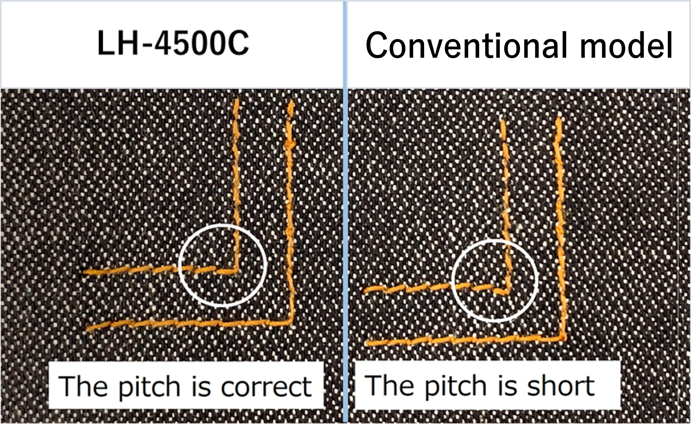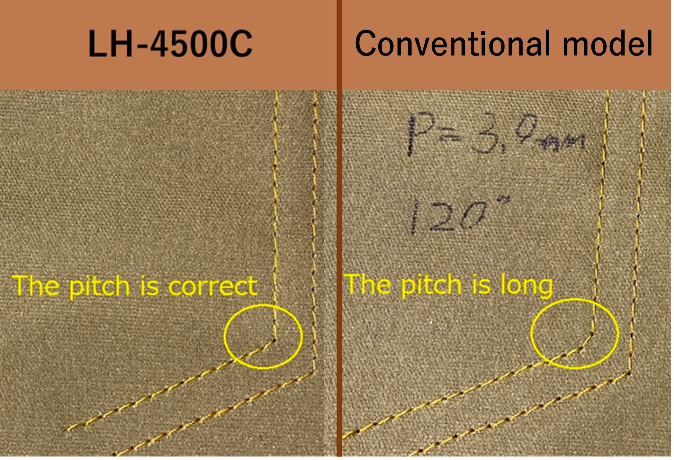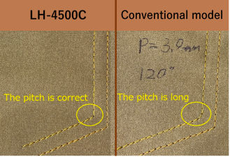 In terms of quality, the shape of the corners does not change, and stitch defects such as floating seams on the inside corners are eliminated, ensuring stable quality. (only LH-4588C)
