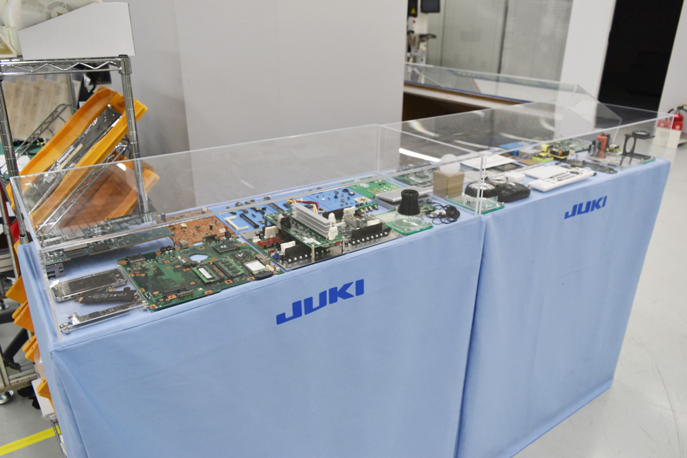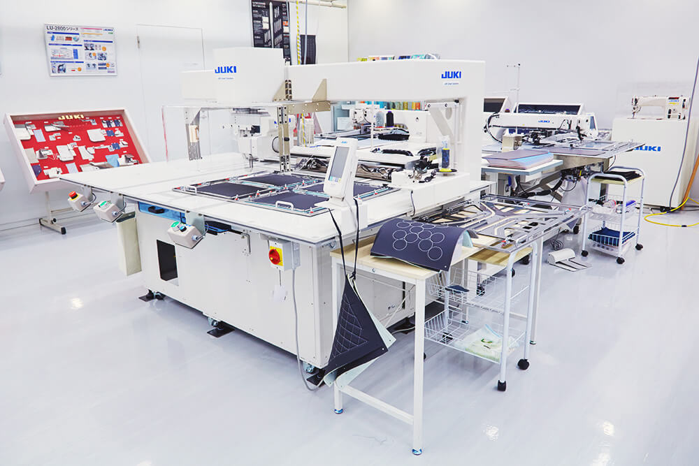 JUKIには、工業用ミシンを展示している「ソーイングセンター」、家庭用ミシンを展示している「そーいんぐ・ぎゃらりー」、実装関連装置を展示している「実装技術センター」の3つのショールームがあります。それぞれの専門スタッフが知識や経験に基づいてご説明をさせていただきます。