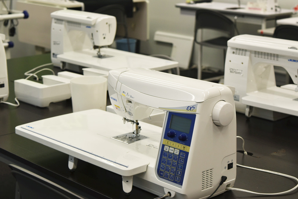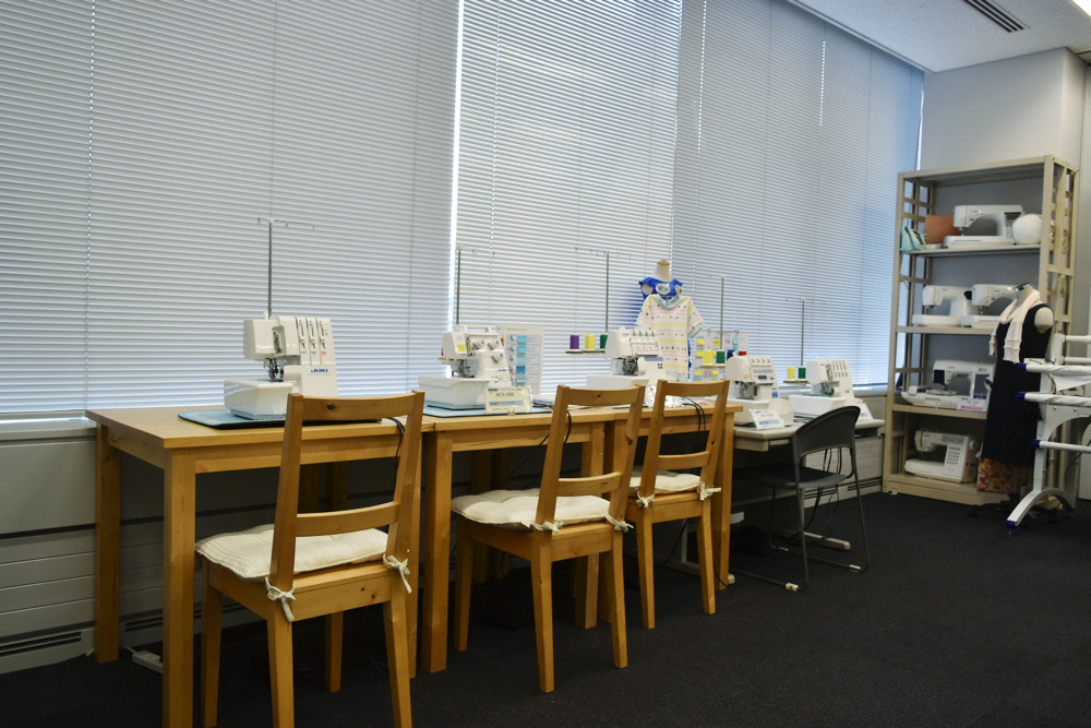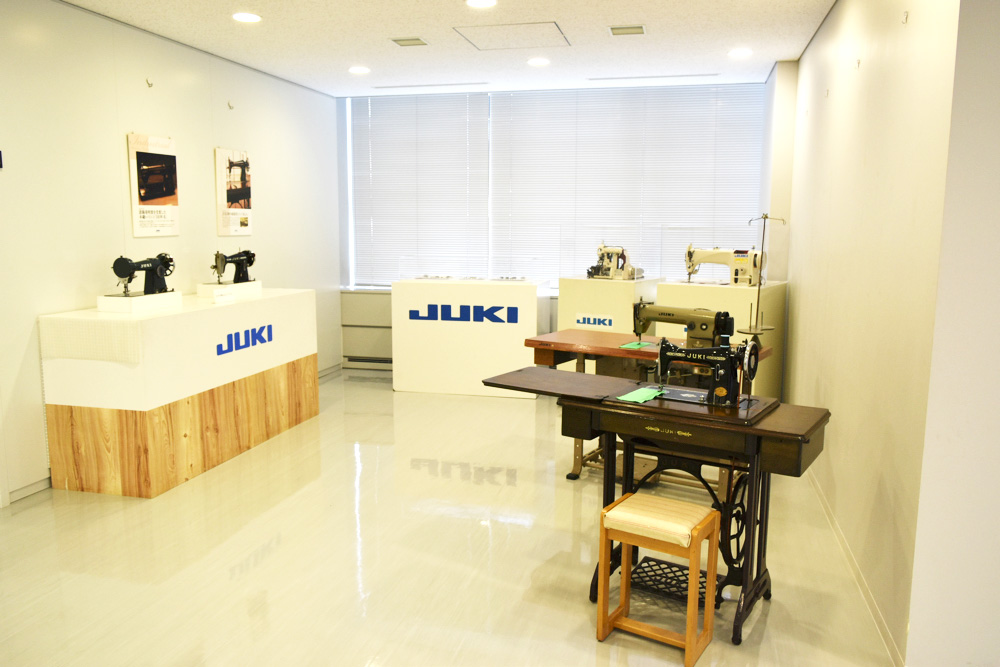 家庭用ミシンのショールームでは、昔懐かしいJUKI家庭用ミシン1号機「足踏みミシン」から最新機種「HZL-NX7」や「HZL-EX7」を用いて、ソーイングやキルト作品作りに便利な機能をご紹介します。