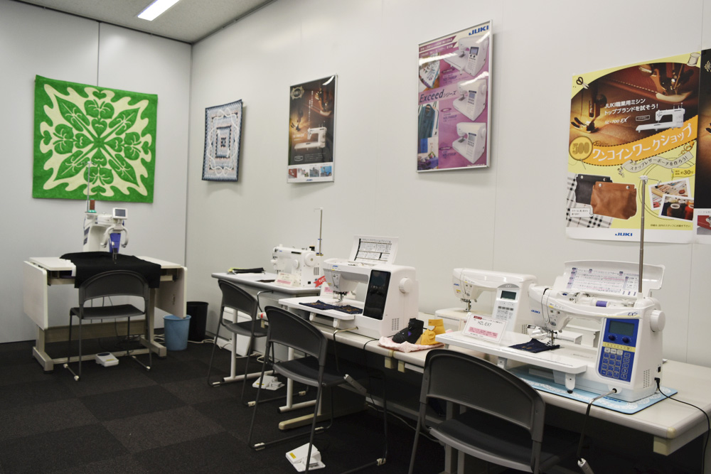 また、日本メーカーではJUKIのみが品揃えをしているキルティング専用ミシンでの操作体験もできます。